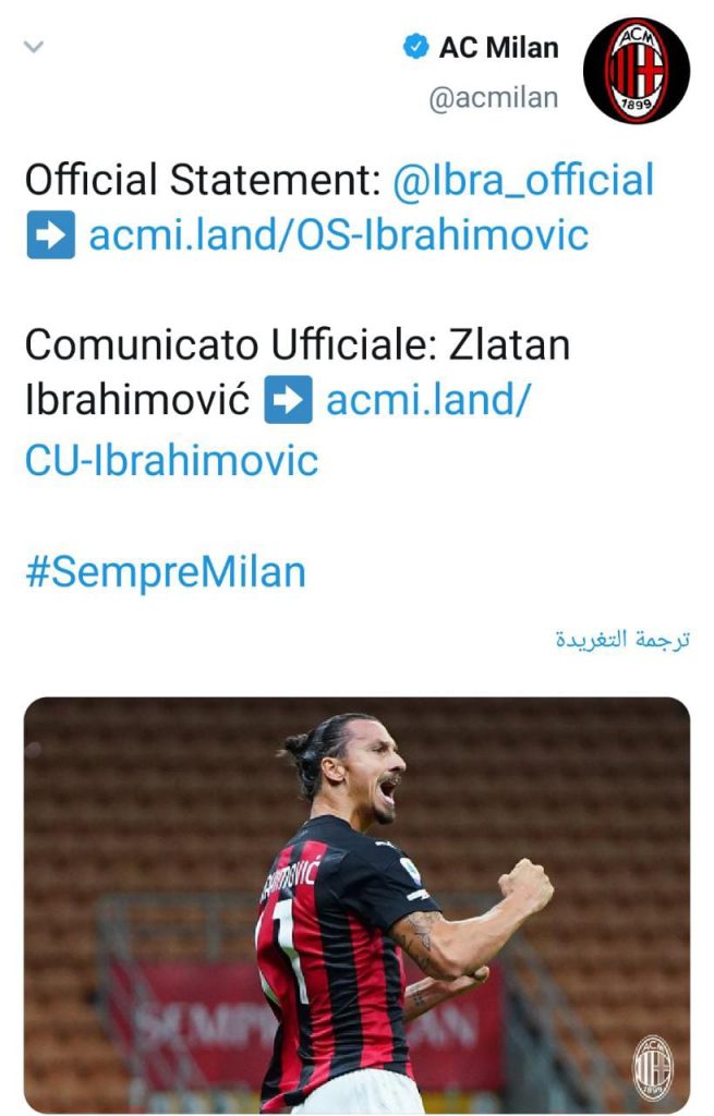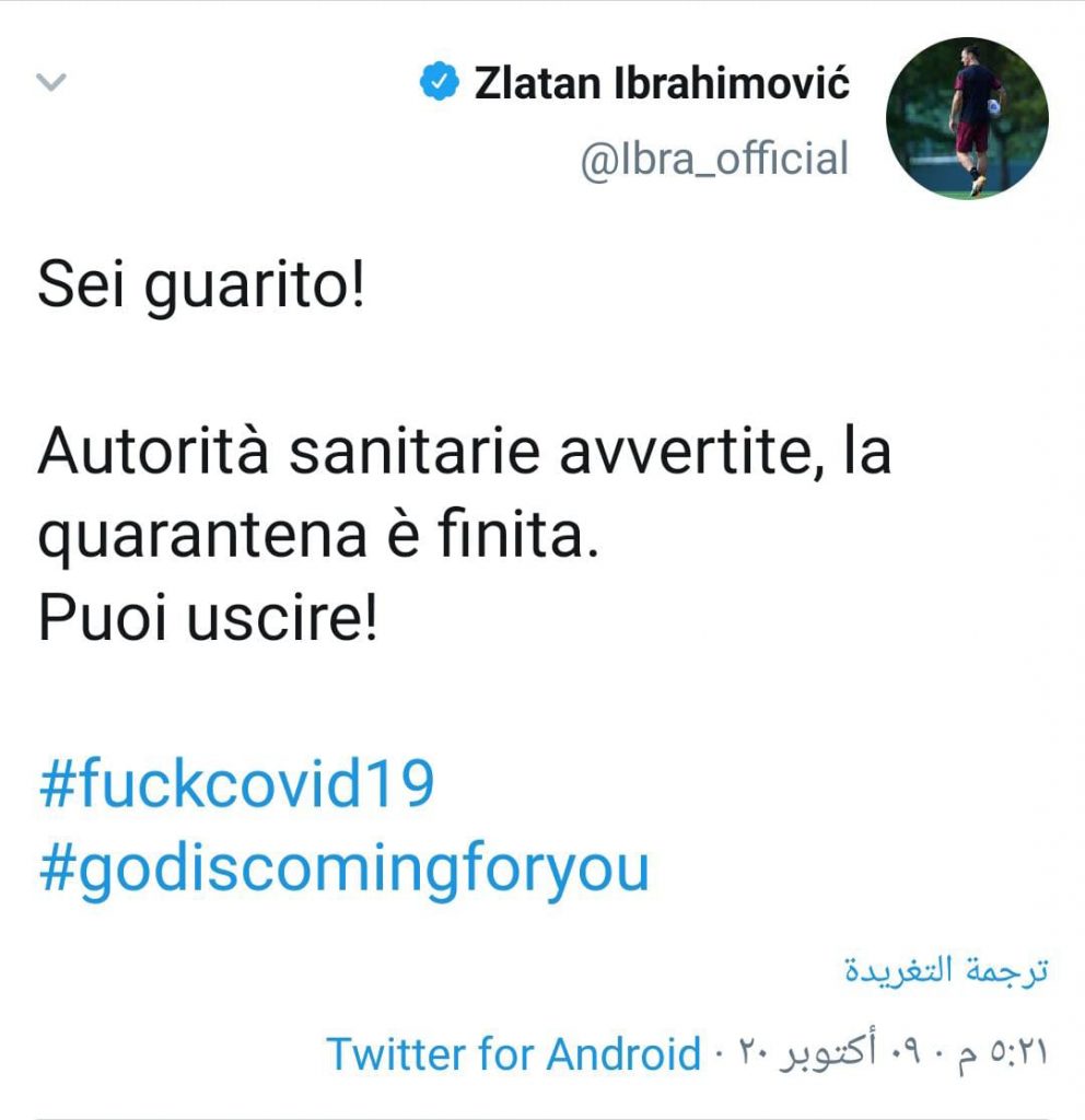 أعلن زلاتان إبراهيموفيتش مهاجم فريق ميلان الإيطالي، تعافيه من فيروس كورونا بشكل رسمي.