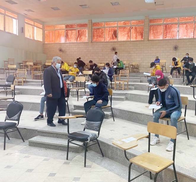 و فى إطار توجيهات أ.د ماجد نجم رئيس جامعة حلوان و أ.د حسام الرفاعى نائب رئيس الجامعة، بتطبيق أقصى درجات الإجراءات الإحترازية أثناءإجراء الامتحانات المؤجلة للفصل الدراسي الأول من العام الدراسي الجاري، بدءا من يوم السبت 27 فبراير 2021 م فقد تم تشكيل فريق عمل تحت قيادة ا.د عماد أبوالدهب عميد كلية العلوم و أ.د محمد صديق وكيل الكلية لشؤون خدمة المجتمع وتنمية البيئة وذلك للإشراف على تلك الإجراءات حيث قامت وكالة البيئة بالكلية بإتخاذ التدابير اللازمة لتهيئة المناخ المناسب للامتحانات، وتوفير كافة الخدمات للطلاب وذلك بوضع خطة متكاملة لتنفيذ هذة الإجراءات والتى شملت إعلان الإجراءات الاحترازية على موقع الكلية وجداول الامتحانات لضمان نشرها للطلاب بكافة وسائل التواصل الاجتماعي ووجود عدة منافذ بالكلية لاستقبال الطلاب صباح يوم الامتحان قبل موعد اللجنة بوقت كافي لعدم حدوث أي تزاحم والتأكد من وجود طبيب وعربة إسعاف بجوار صالات الإمتحانات