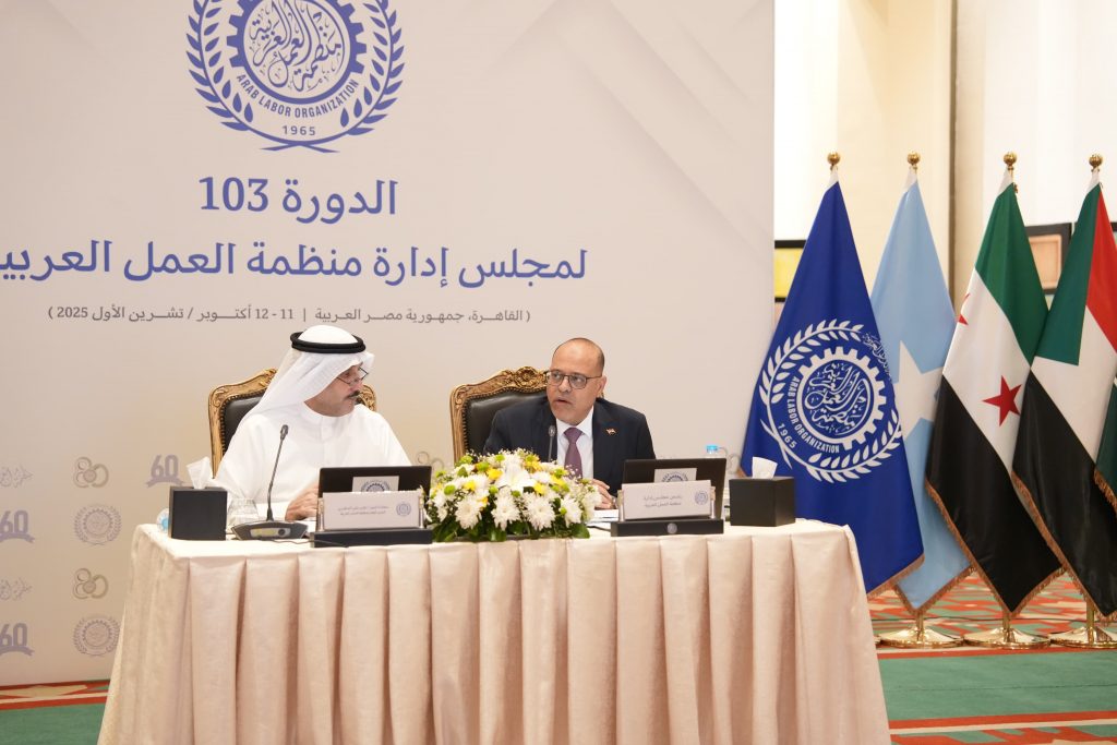 واشاد ” المهيرى ‘ بقيادة محمد جبران لوزارة العمل وحرصه الدائم على إدارة ملفات العمل العربى بشكل متطور ومتوافق يعكس تمتعه بخبرات استراتبجية مما كان له دور فى انتخاب مصر رئيسا لمجلس إدارة منظمة العمل العربية .