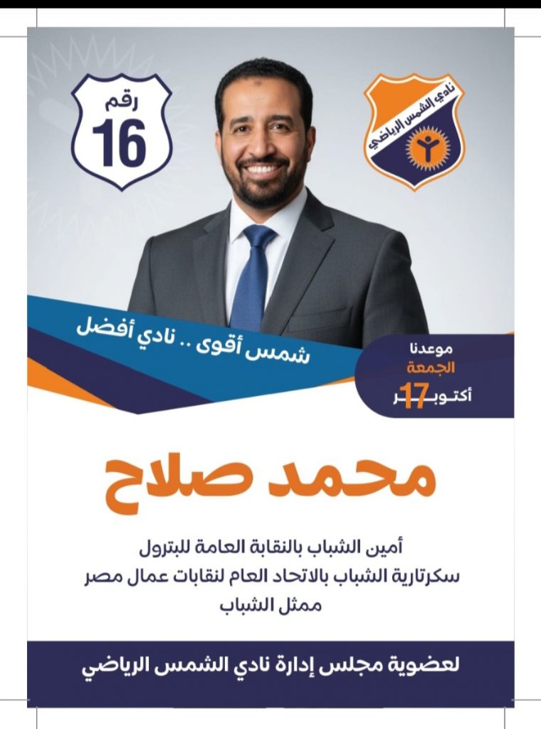 مجلس الدولة يقرر : عودة محمد صلاح لسباق الانتخابات بنادي الشمس